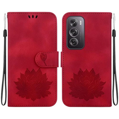 Pour OPPO Reno12 Pro 5G Global Lotus Embossed Leather Phone Case (Rouge)