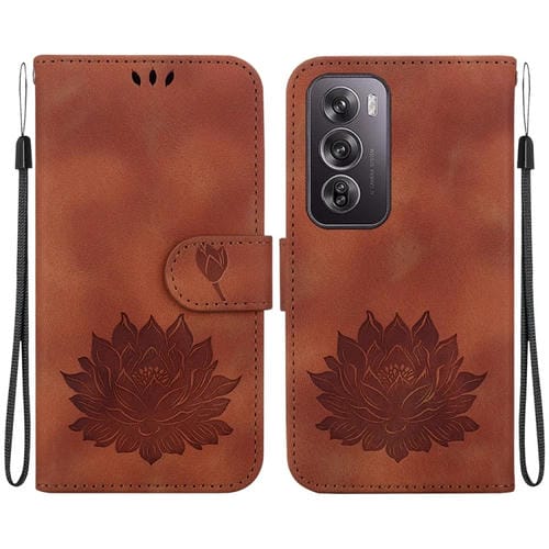 Pour OPPO Reno12 Pro 5G Global Lotus Étui de téléphone en cuir gaufré (marron)