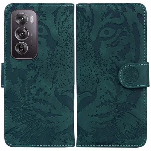 Para Oppo Reno12 Pro 5G Global Tiger Patrón En Relieve Funda de Cuero con Tapa para Teléfono (Verde)