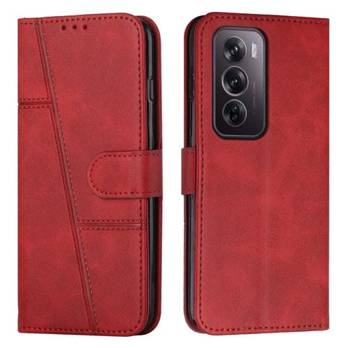 Para Oppo Reno12 Pro Funda de Teléfono de Cuero con Hebilla y Textura de Pantorrilla con Costura Global (Rojo)