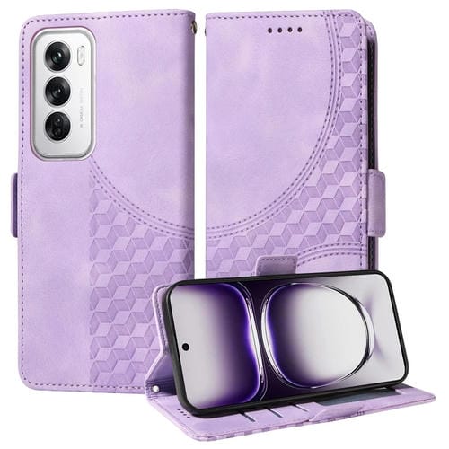 Para Oppo Reno12 Pro Funda de Teléfono de Cuero Estrellado con Rombo En Relieve Global (Púrpura)