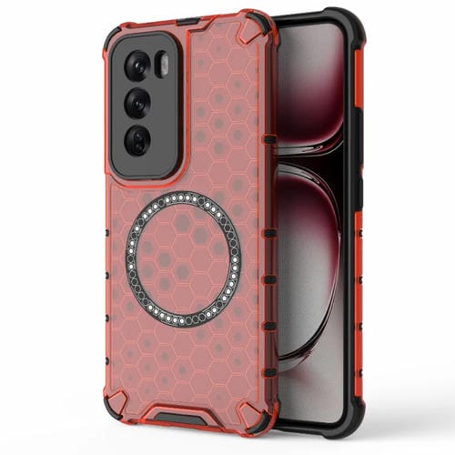 Para Oppo Reno12 Pro Global Honeycomb Magnetic Ring Funda para Teléfono a Prueba de Golpes (Rojo)
