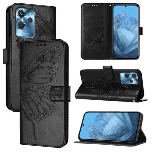 Funda de Cuero para Oukitel C32 con Mariposa en Relieve (Negro)