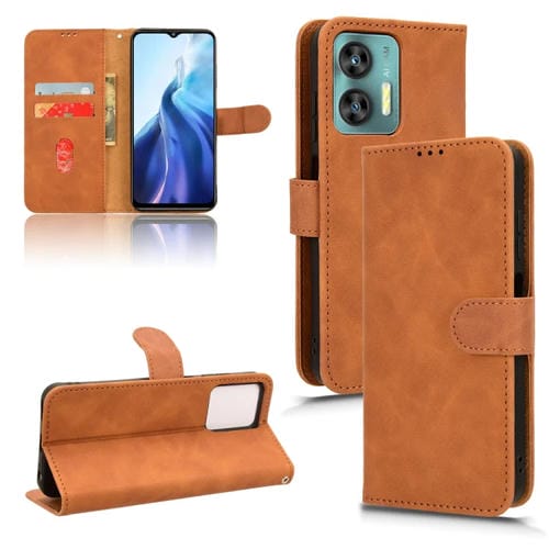 Funda de Cuero para Oukitel C35 / C36 con Tapa Magnética Skin Feel (Marrón)