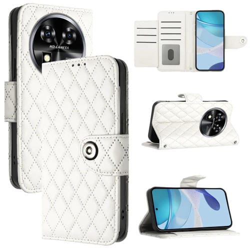 Funda de Cuero para Oukitel C37 con Tapa Textura Rómbica y Cordón (Blanco)