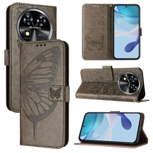 Funda de Cuero para Oukitel C37 con Mariposa en Relieve (Gris)