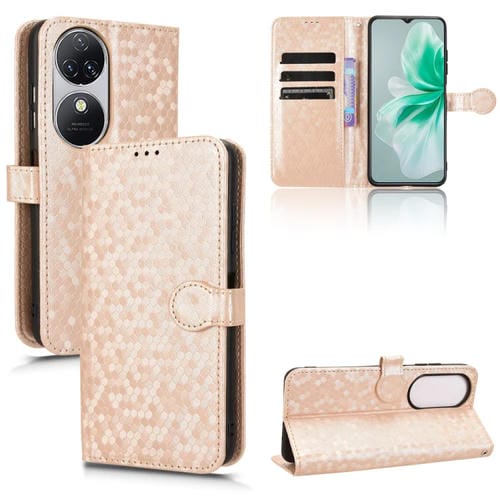 Funda de Cuero para Oukitel C38 con Textura Honeycomb Dot (Dorado)