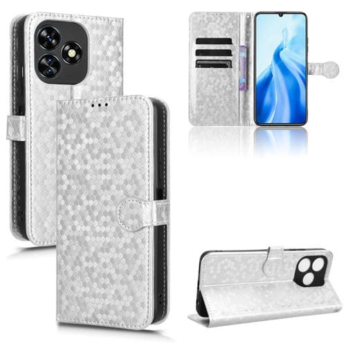 Funda de Cuero para Oukitel C51 con Textura Honeycomb Dot (Plata)