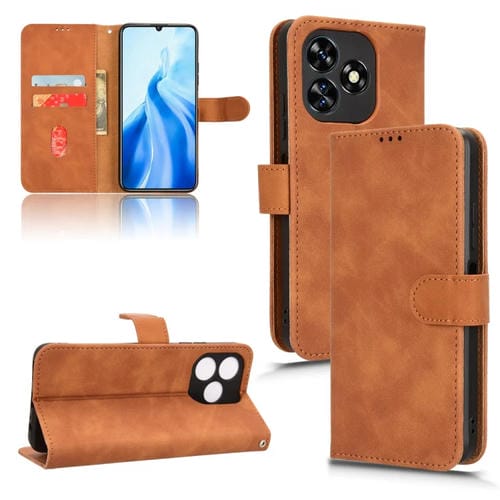 Funda de Cuero para Oukitel C51 con Tapa Magnética (Marrón) Skin Feel