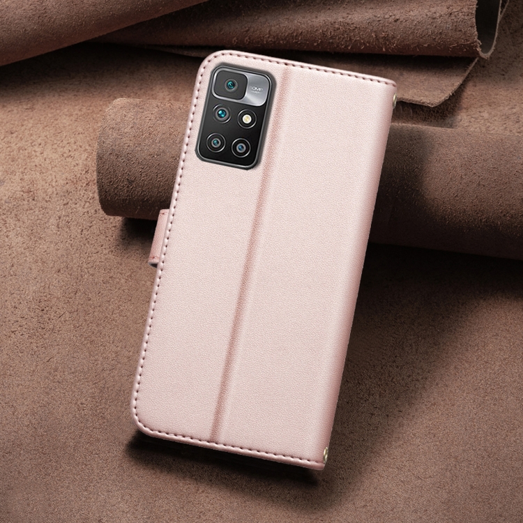 Para Redmi 10 2022 / Note 11 4G Funda de Cuero para Teléfono con Textura Cuadrada (Oro Rosa)