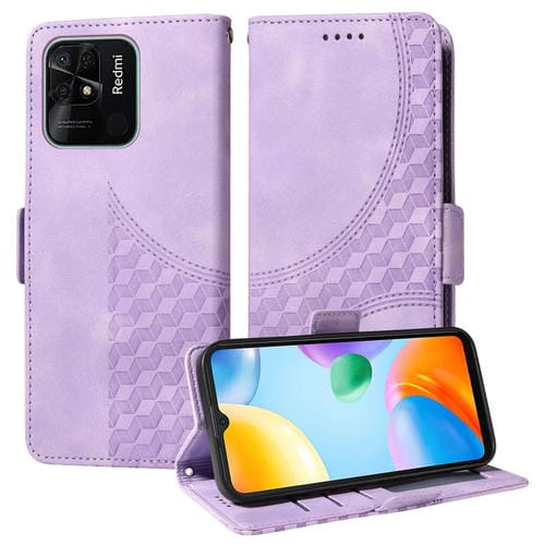Para Redmi 10C / 10 India Funda para Teléfono de Cuero Estrellado con Rombos En Relieve (Púrpura)