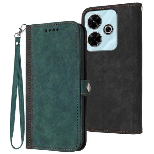 Para Redmi 13 4G Funda de Cuero para Teléfono con Correa de Mano con Doble Pliegue y Hebilla Lateral (Verde Oscuro)