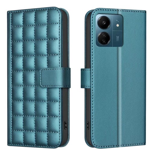 Para Redmi 13C Funda de Cuero con Textura Cuadrada (Verde)