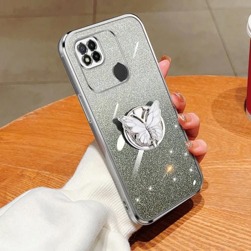 Para Redmi 9C / 10A Funda para Teléfono de TPU con Soporte de Mariposa con Brillo Degradado Plateado (Plata)