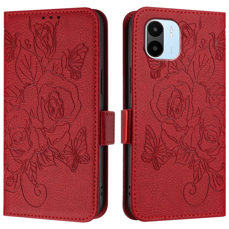 Para Redmi A1 4G Global / A2 4G Funda de Teléfono de Cuero Antirrobo Rfid con Relieve Rosa (Rojo)
