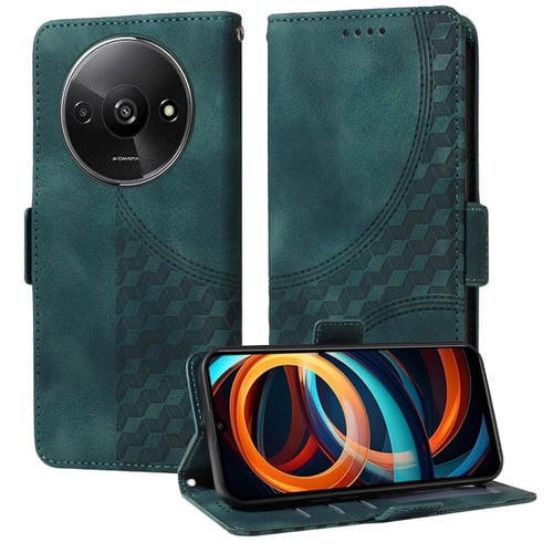 Para Redmi A3 4G Funda de Teléfono de Cuero Estrellado con Rombo En Relieve Global (Verde)