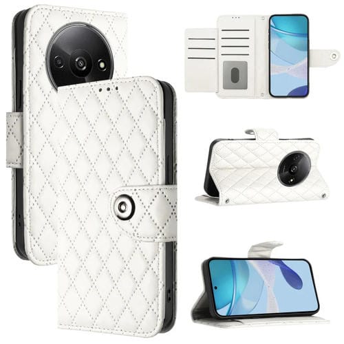 Para Redmi A3 Funda de Cuero con Tapa con Textura Rómbica y Cordón (Blanco)