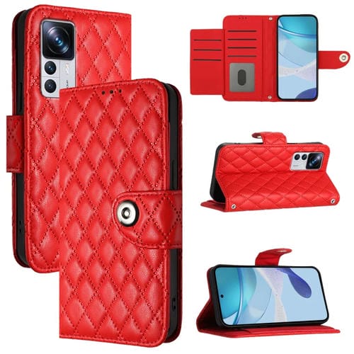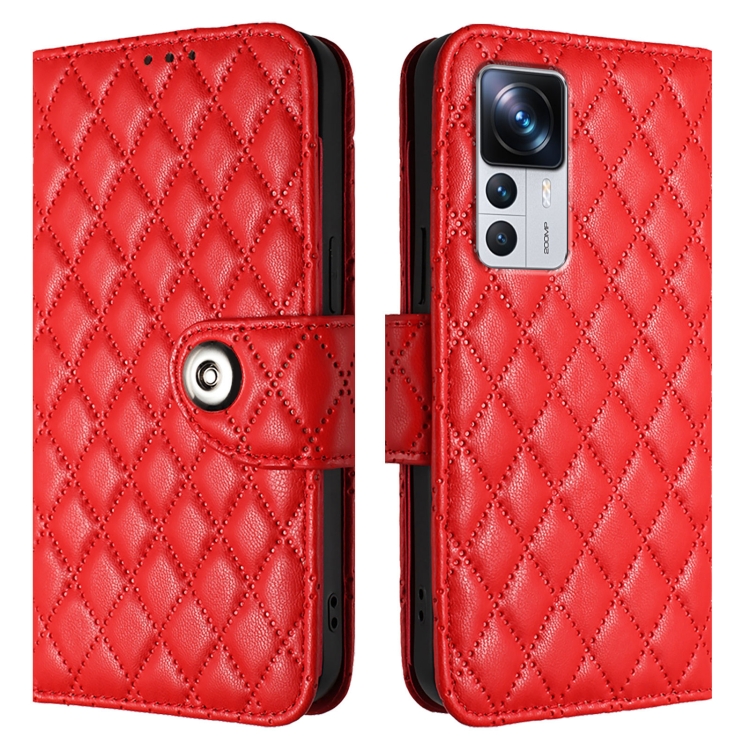 Para Redmi K50 Funda de Cuero con Tapa con Textura Ultra Romboidal y Cordón (Rojo)