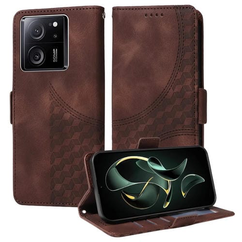 Para Redmi K60 Funda de Teléfono de Cuero Estrellado con Rombos En Relieve Ultra (Marrón)