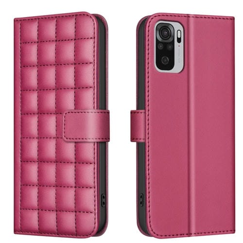 Para Redmi Note 10 4G / Note 10S Funda de Cuero para Teléfono con Textura Cuadrada (Rojo)