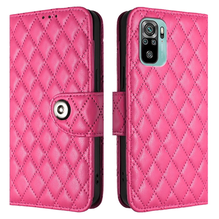 Para Redmi Note 10 4G / Note 10S Funda para Teléfono con Tapa de Cuero con Textura Rómbica y Cordón (Rojo Rosa)