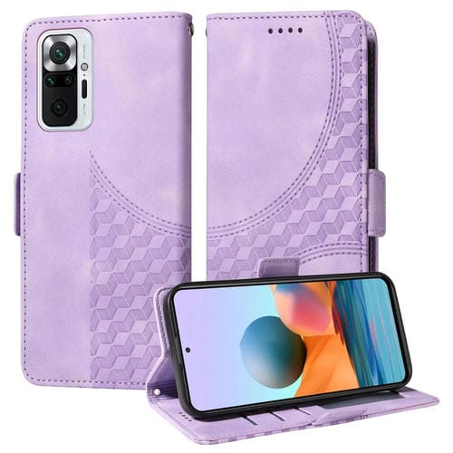 Para Redmi Note 10 Pro 4G Funda para Teléfono de Cuero Estrellado con Rombos En Relieve Global (Púrpura)