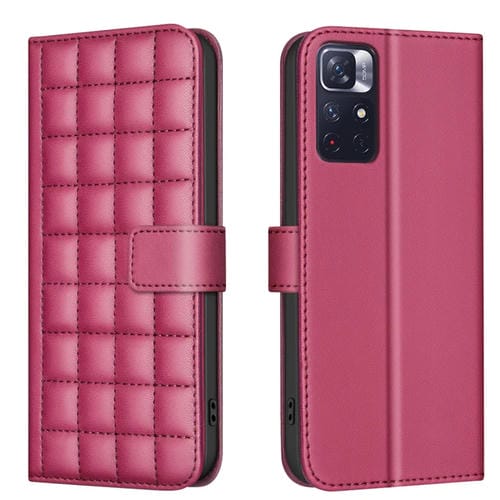 Para Redmi Note 11 / Note 11S Funda de Cuero para Teléfono con Textura Cuadrada (Rojo)