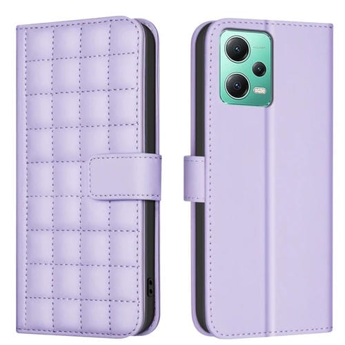 Para Redmi Note 12 5G Global / Xiaomi Poco X5 Funda de Cuero para Teléfono con Textura Cuadrada (Púrpura)