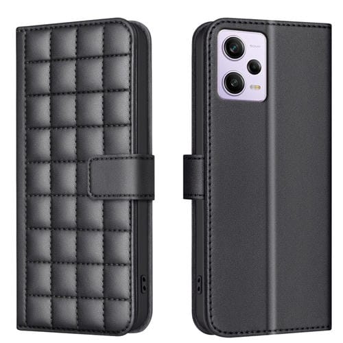 Para Redmi Note 12 Pro Funda de Cuero para Teléfono con Textura Cuadrada Global (Negro)