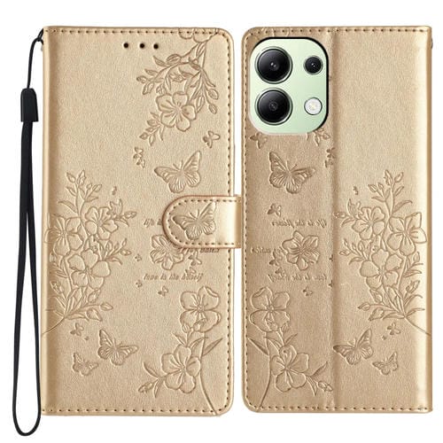 Para Redmi Note 13 4G Funda de Cuero para Teléfono con Mariposas y Flores (Dorado)