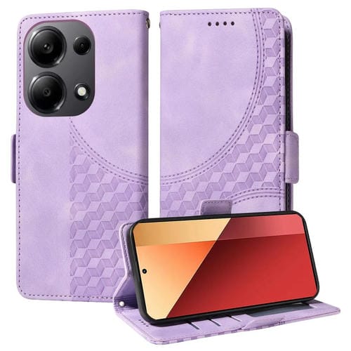 Para Redmi Note 13 Pro 4G Funda para Teléfono de Cuero Estrellado con Rombos En Relieve Global (Púrpura)