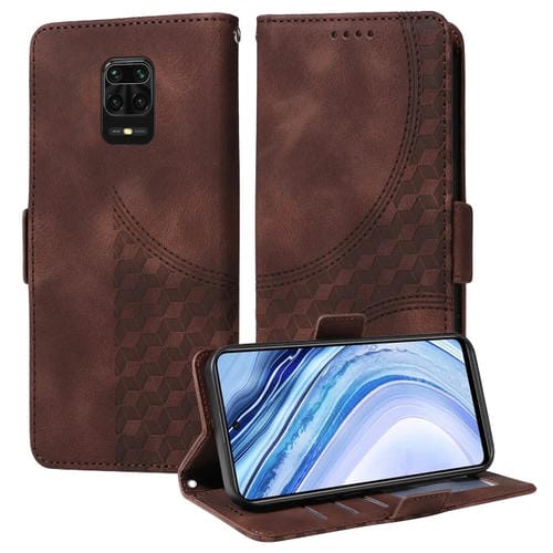 Para Redmi Note 9 Pro 4G Funda para Teléfono de Cuero Estrellado con Rombos En Relieve (Marrón)
