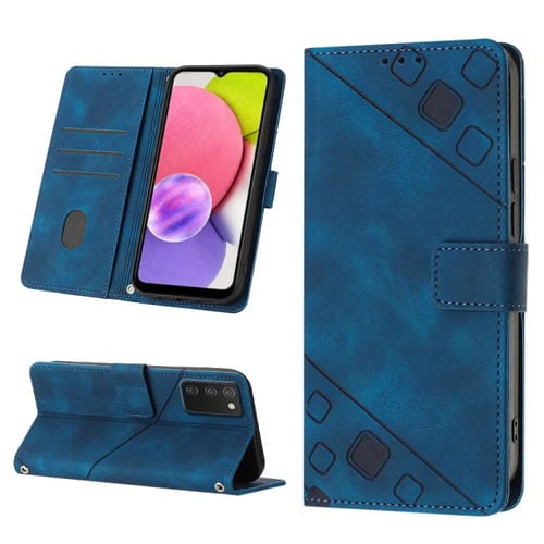 Estuche para Teléfono Samsung Galaxy A03S 164.3mm Cuero En Relieve con Tacto de Piel (Azul)