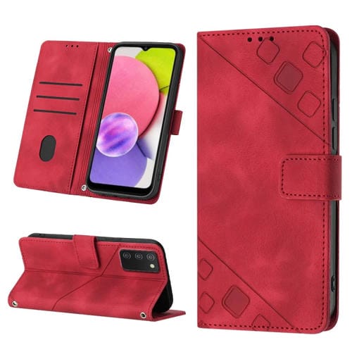 Estuche para Teléfono Samsung Galaxy A03S 166.6mm Cuero En Relieve con Tacto de Piel (Rojo)