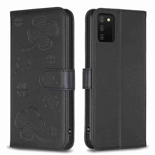 Funda para Teléfono Samsung Galaxy A03S A02S Cuero Relieve Cuatro Hojas (Negro)