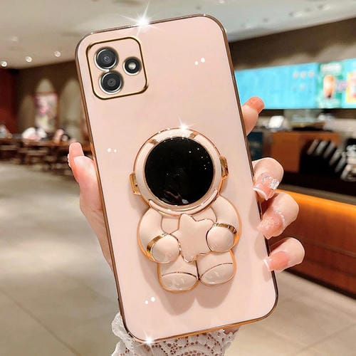 Estuche para Teléfono Samsung Galaxy A04E Embrace Stars con Soporte Astronauta Galvanizado (Rosa)