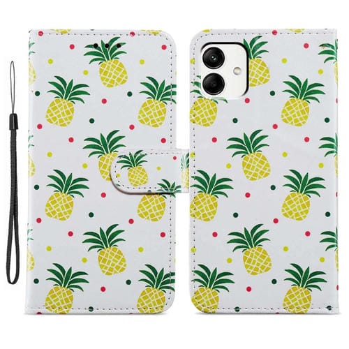 Funda para Teléfono Samsung Galaxy A05 Cuero con Tapa Horizontal y Patrón Pintado (Piña)