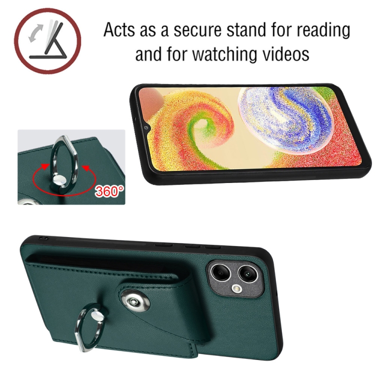 Funda para Teléfono Samsung Galaxy A05 de PU con Soporte para Anillo y Bolsa para Tarjeta (Verde)