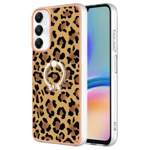 Estuche para Teléfono Samsung Galaxy A05S IMD Doble Cara Galvanoplastia Soporte Anillo (Estampado de Leopardo)