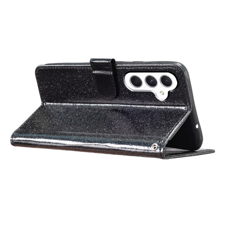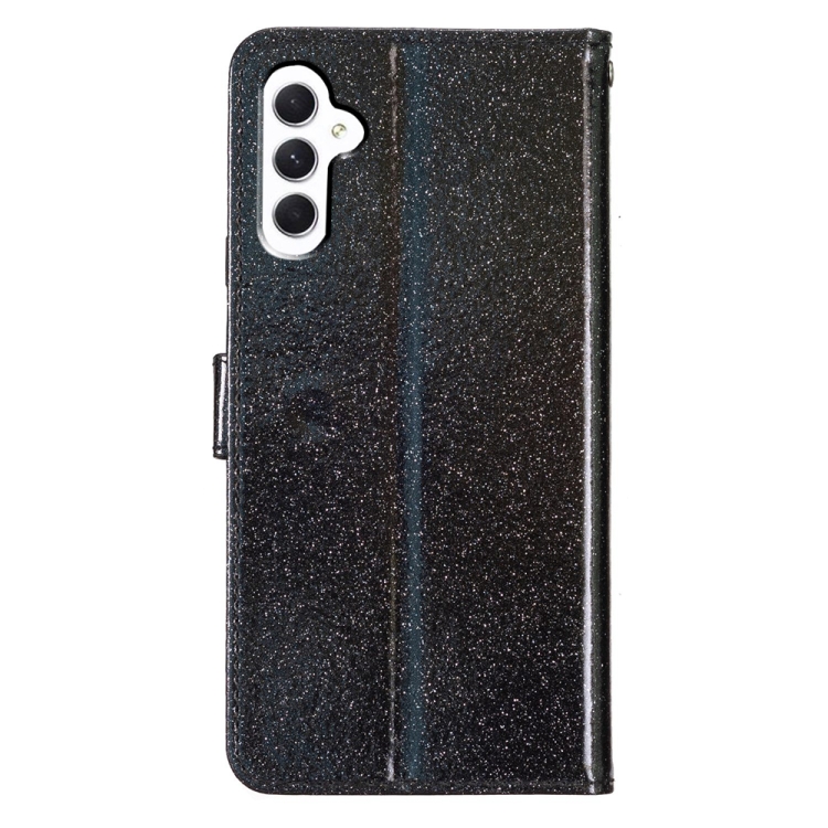Funda para Teléfono Samsung Galaxy A05S con Tapa de Cuero y Purpurina en Polvo (Negro)