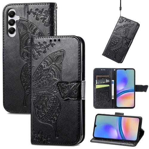 Funda para Teléfono Samsung Galaxy A05S Cuero con Relieve de Flor y Mariposa (Negro)