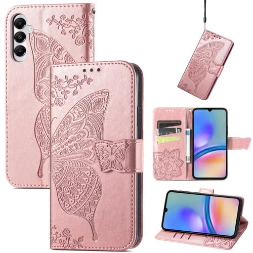Funda para Teléfono Samsung Galaxy A05S Cuero Relieve Flor Amor y Mariposa (Oro Rosa)