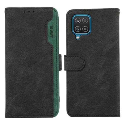 Funda de Cuero Abeel para Samsung Galaxy A12 Color Block Magnética Rfid (Negro-Verde)