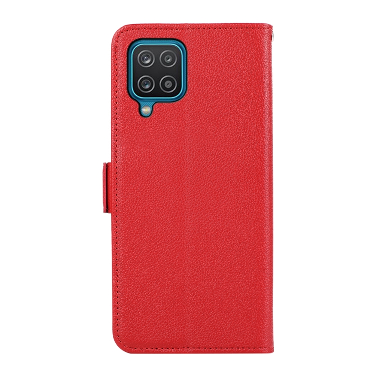 Funda para Teléfono Samsung Galaxy A12 Abeel Cuero Patrón Litchi Magnético Lateral (Rojo)
