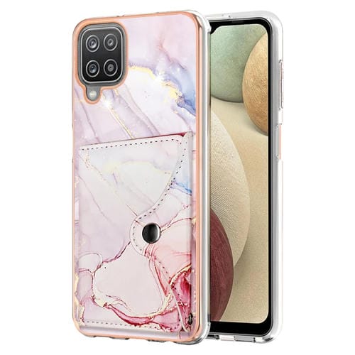 Estuche para Teléfono Samsung Galaxy A12 con Ranura para Tarjeta Imd con Patrón de Mármol (Oro Rosa)