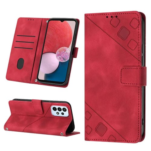 Estuche para teléfono Samsung Galaxy A13 Lite / A13 4G cuero en relieve con tacto de piel (Rojo)