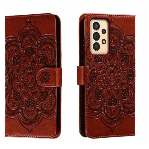 Funda de Cuero Samsung Galaxy A13 Sun Mandala con Patrón En Relieve (Marrón)