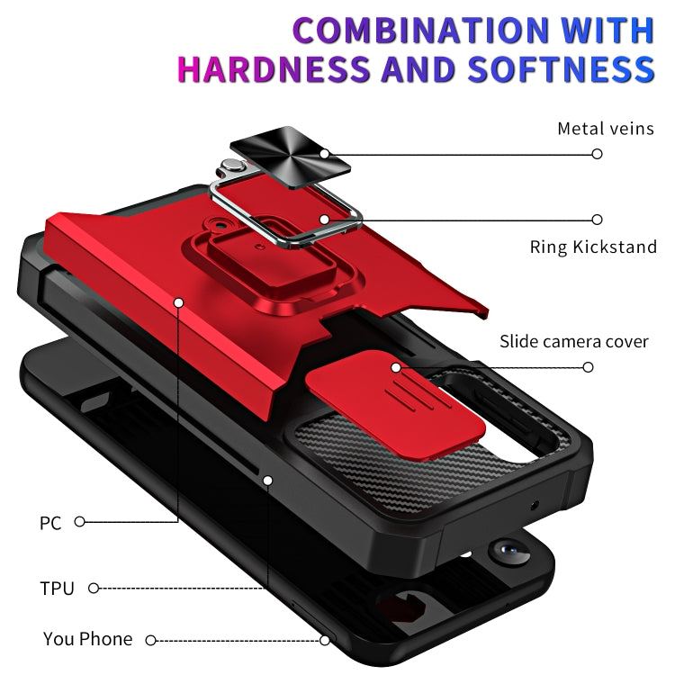 Estuche Deslizante Samsung Galaxy A14 5G Camshield con Soporte para Anillo y Ranura para Tarjeta (Rojo)