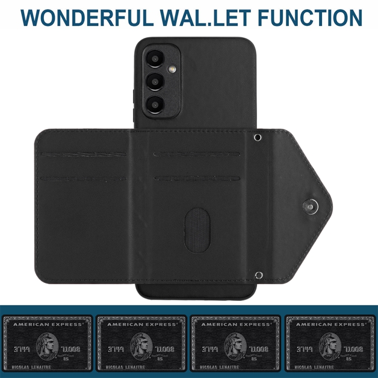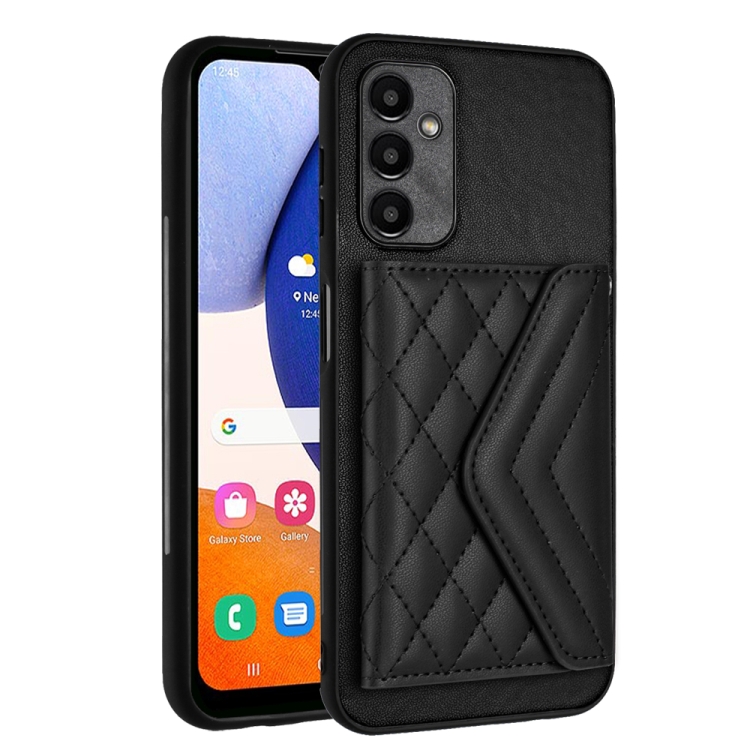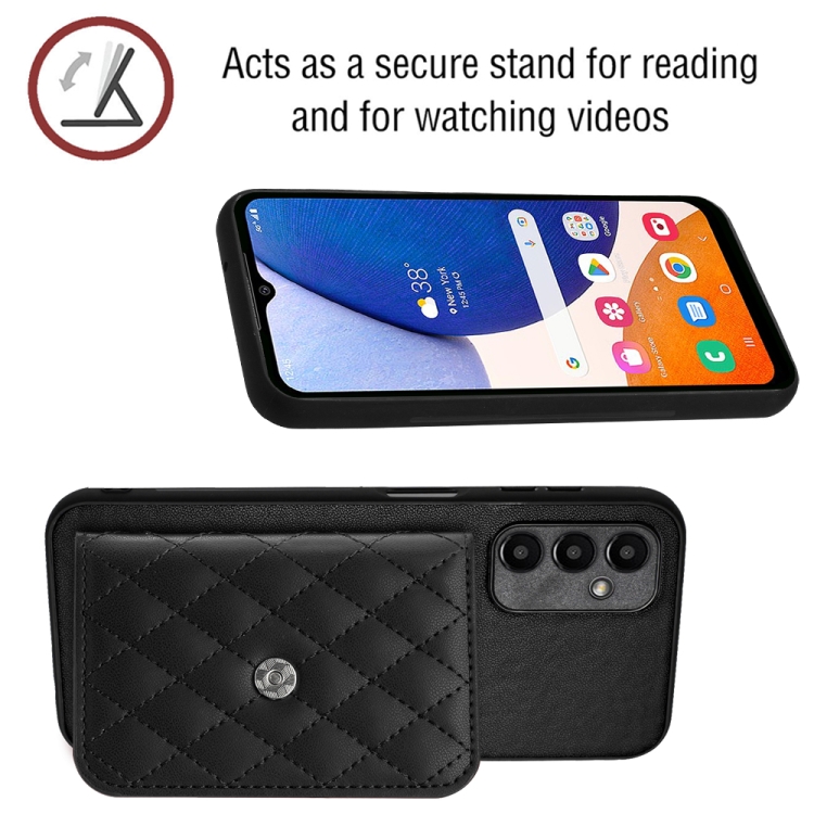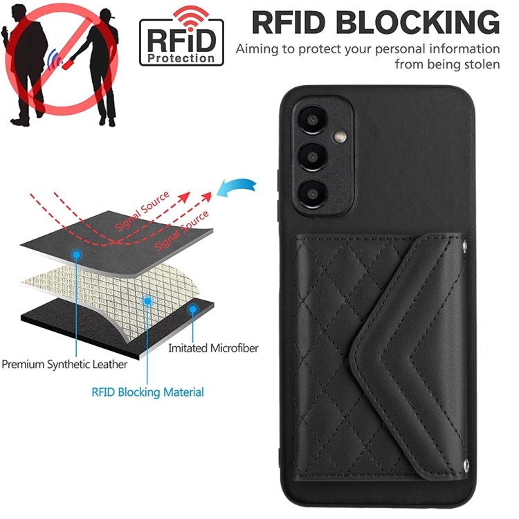 Funda para Teléfono Samsung Galaxy A14 5G Rfid con Bolsa para Tarjetas Textura Rómbica y Cordón Largo (Negro)