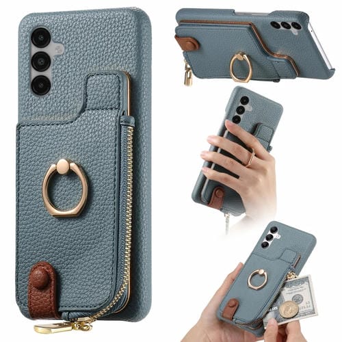 Funda para Samsung Galaxy A14 Litchi Leather Oil Edge Ring Zipper Wallet Back (Azul)